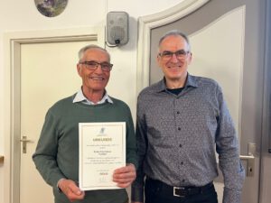 Bei der Jahresmitgliederversammlung am 17. März 2026 im Vereinsheim des DAV Landsberg ehrte 1. Vorsitzender Jens Trinczek Helmut Köglsberger für 15 Jahre Mitgliedschaft und Ernst Schulz (siehe Foto) für 40 Jahre Treue zu unserem Verein.
